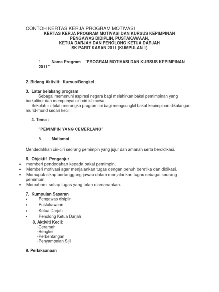 Contoh Kertas Kerja Program Motivasi Pengawas Pdf
